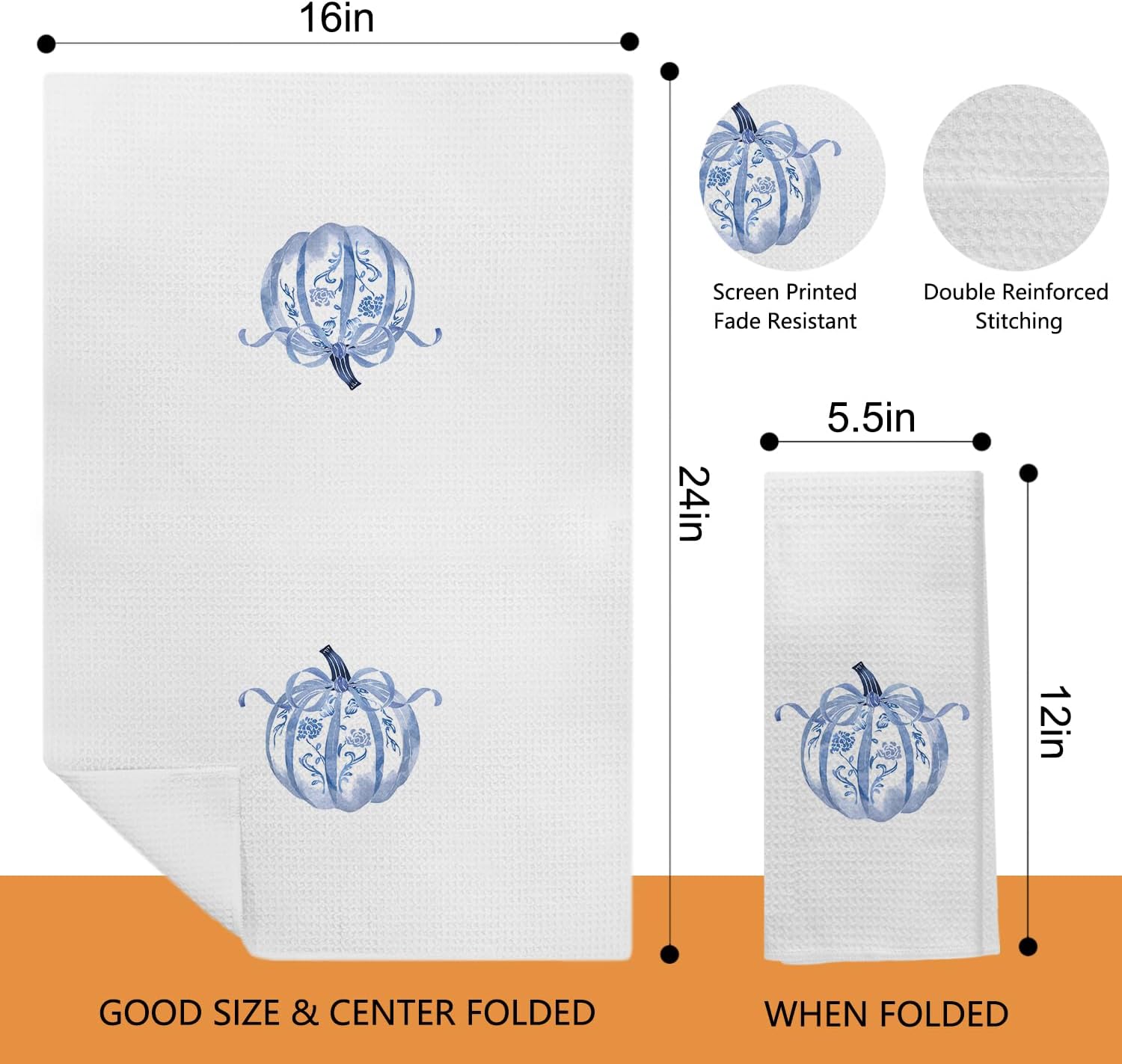 Fall Blue Chinoiserie Pumpkin Kitchen Towels, Autumn Coquette Bow Pumpkin Decorative Hand Towels for Bathroom, Fall Dish Towels, Fall Pumpkin Kitchen Bathroom Decor, 16x24 Inch
