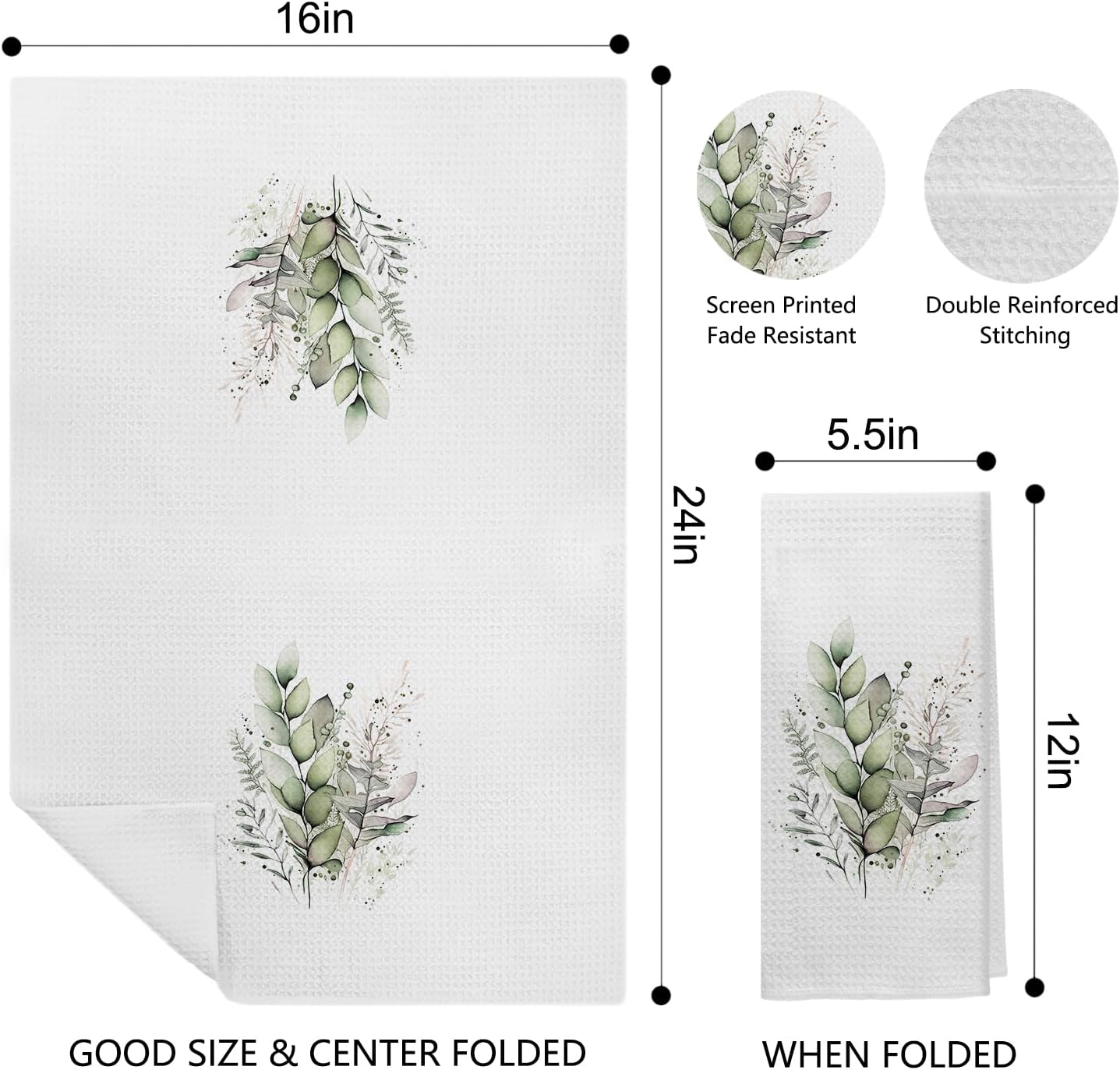 Sage Green Eucalyptus Kitchen Towels Set of 2, Watercolor Sage Green Leaf Decorative Hand Towels for Bathroom Kitchen, Eucalyptus Bathroom Decor, Sage Green Kitchen Decor, 16x24 Inches